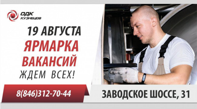 Крупнейшее двигателестроительное предприятие Самарской области – ПАО «ОДК-Кузнецов» – проведет 19 августа Ярмарку вакансий. Представители всех производственных и административных подразделений расскажут соискателям о специфике работы, требованиях к сотрудникам, перспективам роста и возможностях обучения.