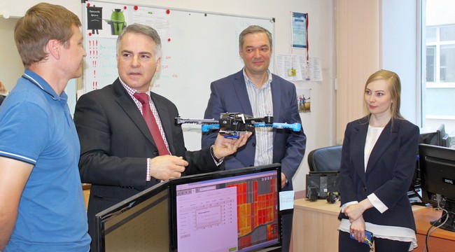 Декан ФАИТа Николай Губанов провел для гостей экскурсию по факультету и продемонстрировал процесс создания онлайн-сервиса для точного земледелия. Данный проект разрабатывается в рамках сотрудничества кафедры «Электронные системы и информационная безопасность» и проектного офиса научно-производственной компании «Сетецентрические платформы».