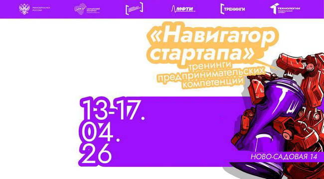 Так, студенты приглашаются к участию в тренинге «Навигатор стартапа». Этот проектный интенсив, который поможет структурировать предпринимательские навыки в единую систему. Он состоится в университетской Точке кипения по адресу – ул. Ново-Садовая, 14, (14 корпус), ауд. 102.
